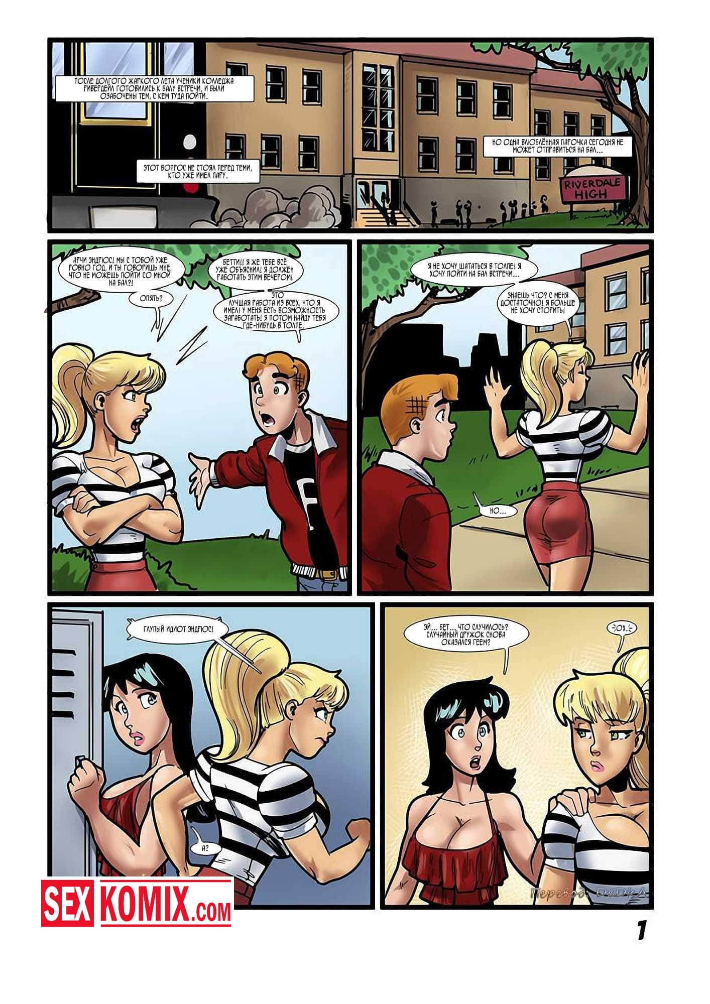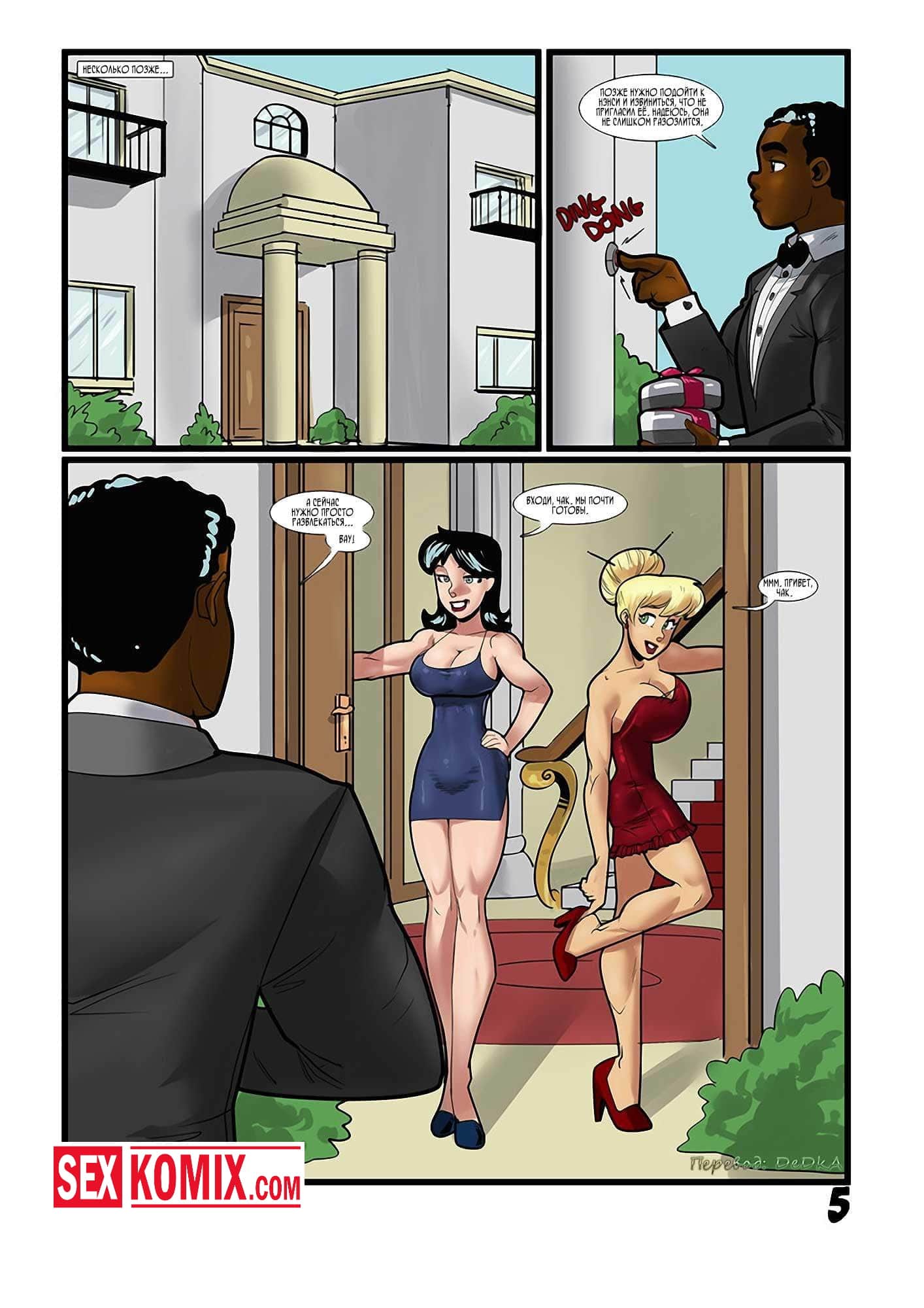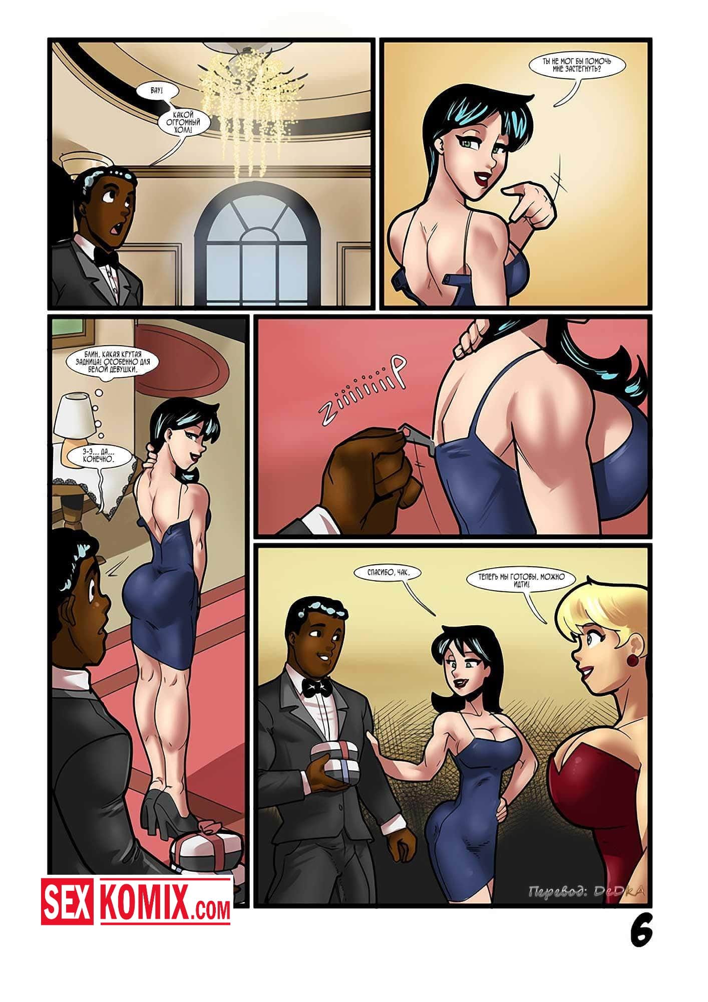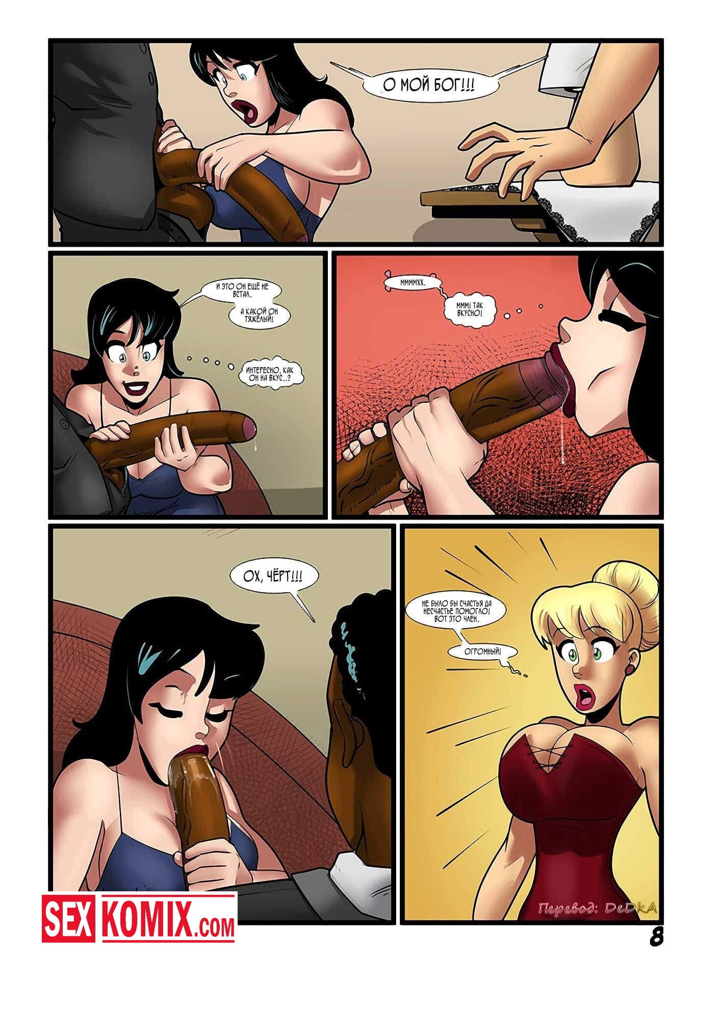Порно комикс Бетти и Вероника. Однажды вы пойдёте с чёрным. Две подружки собрались на вечеринку и попросили своего темнокожего друга заехать за ними вечером. Когда парень прибыл девушки не на шутку возбудились, ведь он хорошо выглядел. Одна из подружек не выдержала и накинулась на парня, начала расстёгивать его ширинку. Оттуда показалась огромный член и девушкам окончательно снесло крышу. Они сосали его по очереди, а потом подставляли свои жопы чтобы парень хорошенько отымел их. Что он и сделал. Жестко трахнул сначала одну, потом вторую красотку.