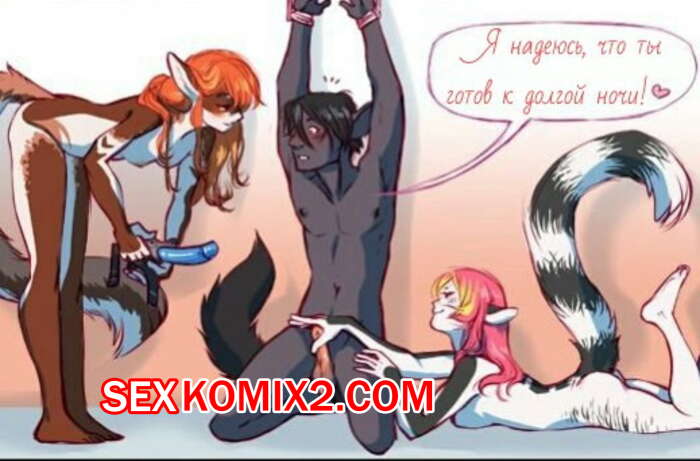 Порно комикс Наш узник. Our prisoner Две горячие сисястые красотки схватили и связали парня, чтобы с ним повеселиться. Пока одна из сучек отсасывала у парня хуй, ее подруга трахала его в задницу страпоном.