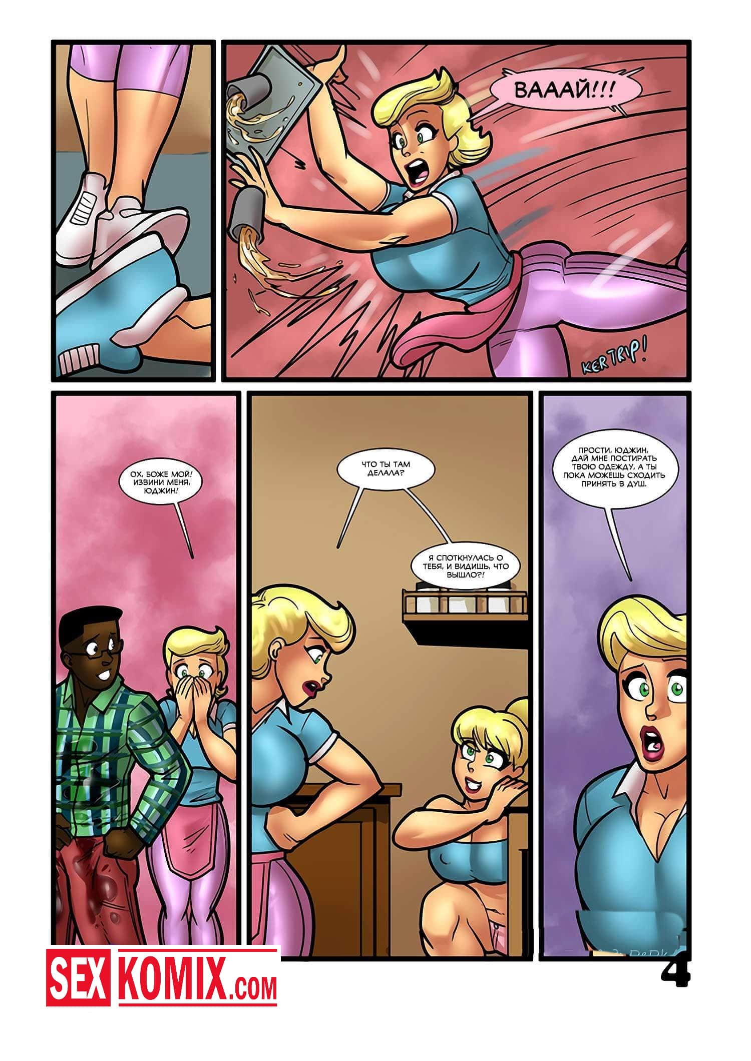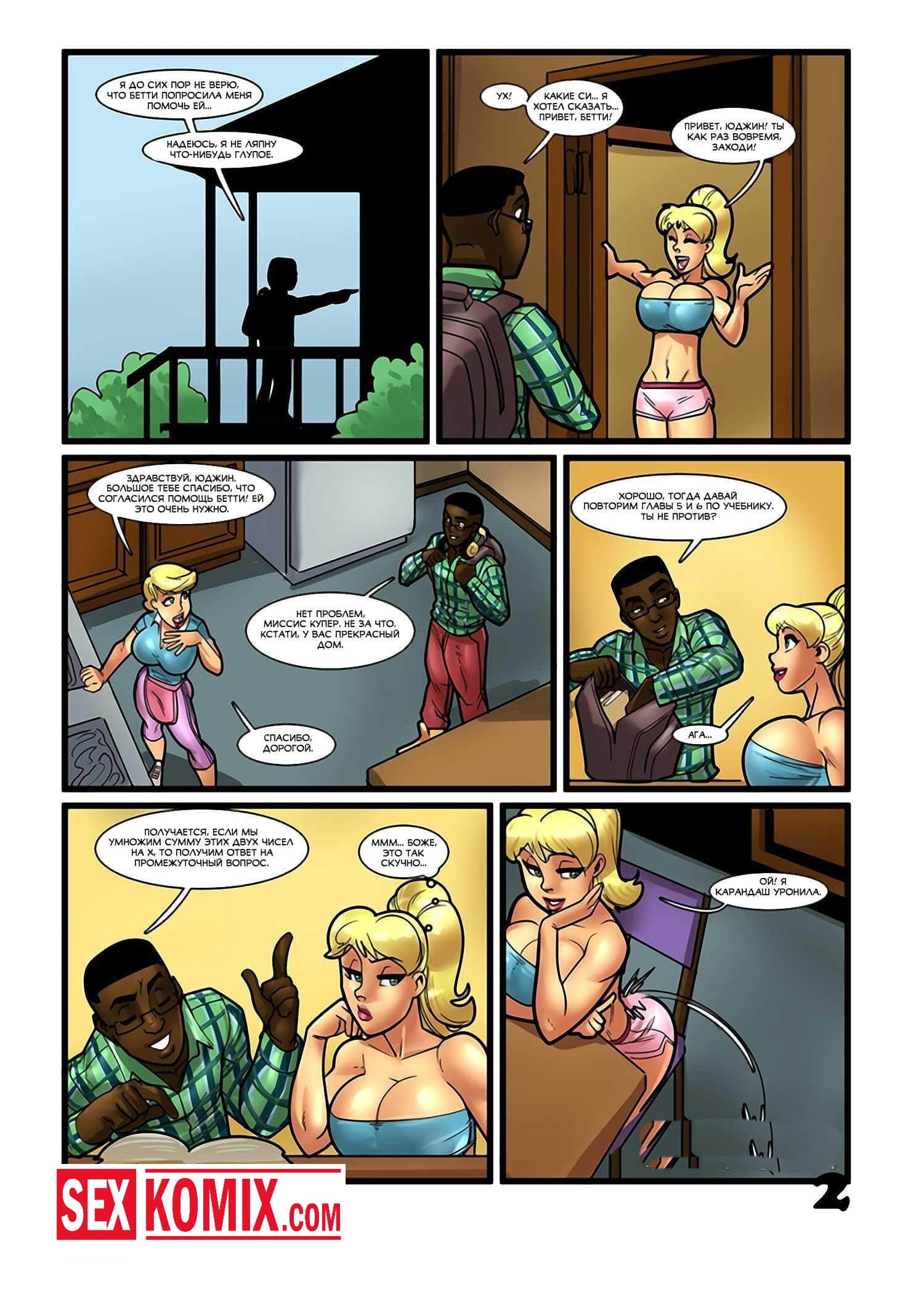 Порно комикс Тренировка Бетти и Элис. Чернокожий парень пришёл к своей подруге в общежитие, и они занялись горячим сексом. В момент оргазма зашла соседка девушки и увидела его огромный член. Когда парень пошёл принять душ после секса, соседка пришла к нему и соблазнила, девушка хотела тоже попробовать его член в своей горящей киске.