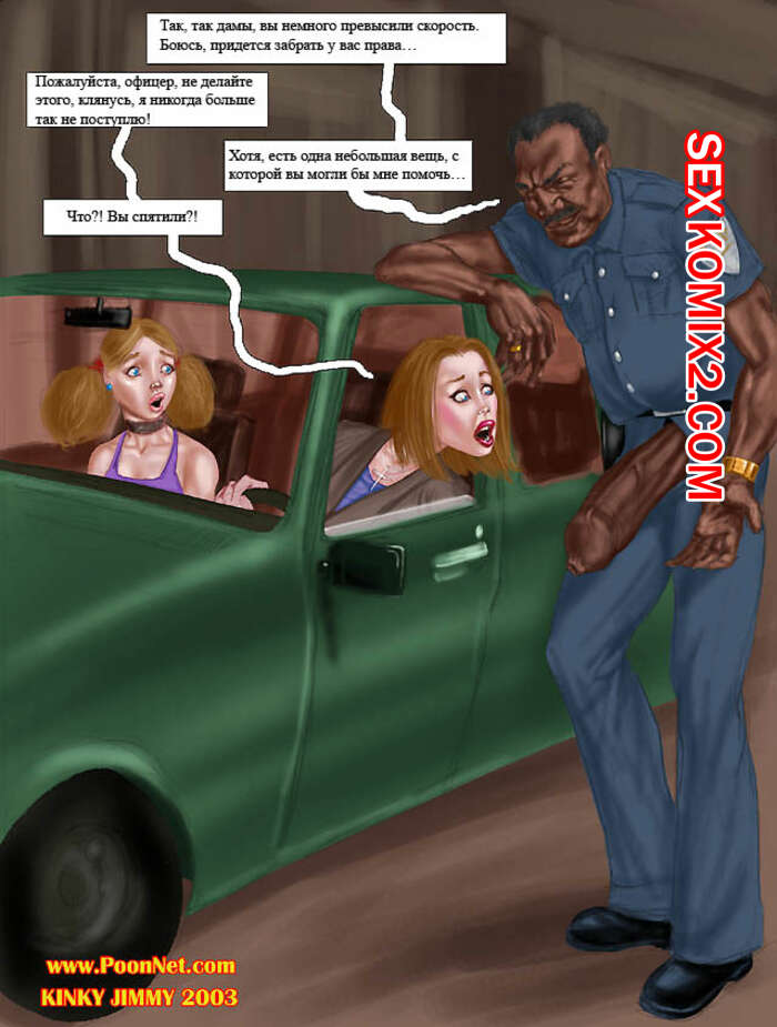 Порно комикс Превышение скорости. Poonnet Две горячие краостки превысили скорость и их остановил чернокожий полицейский. Он предложил девушкам решить вопрос на месте и достал свой большой хуй, чтобы сучки его отсосали и он их выебал.