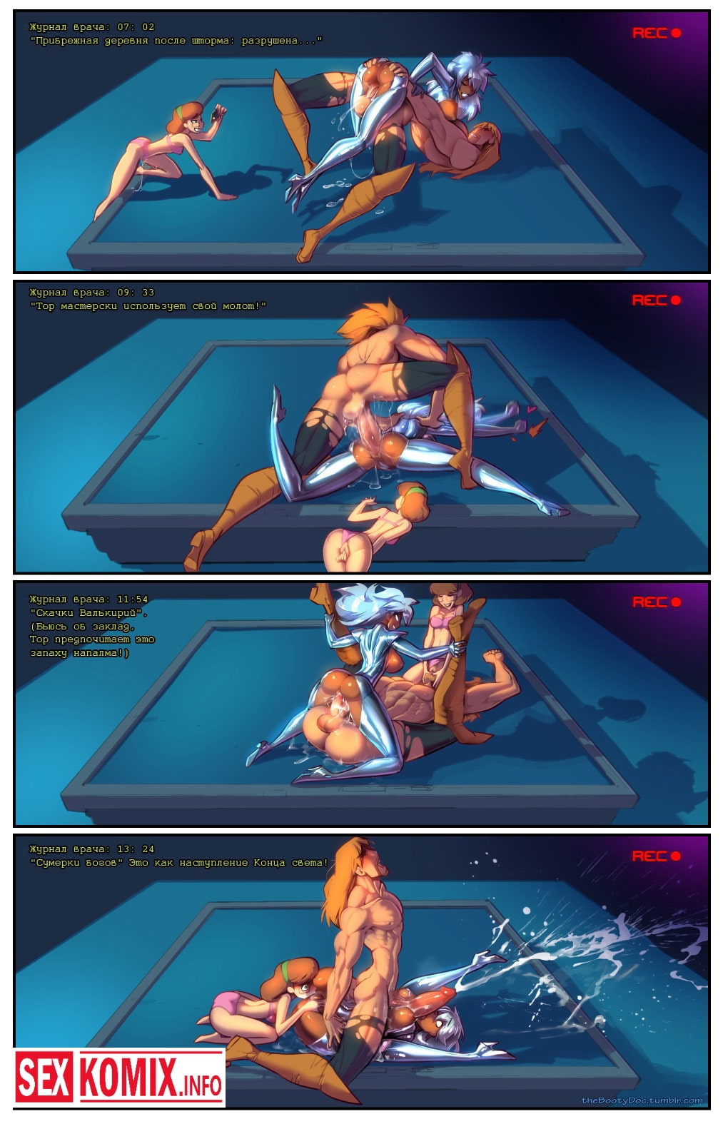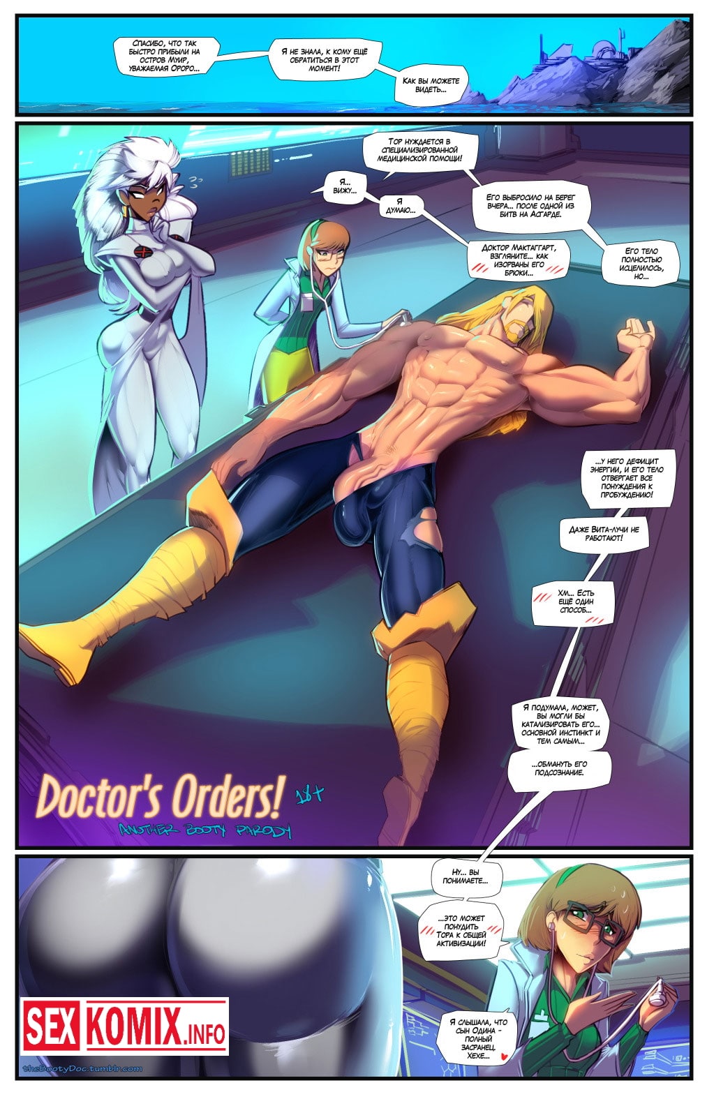 Порно комикс Предписание доктора. Гроза из людей Икс нашла раненого супер героя и доставила его в штаб, будучи хорошим врачом, она осмотрела пациента. Женщина решила, что ему нужен особый уход и внимание, к такому заключению она пришла после того, как увидела его огромный член. Гроза начала сосать его и пострадавший очнулся, это настоящая работа профессионала.
