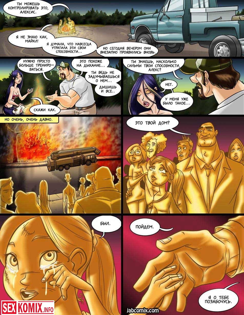 Порно комикс Мега. Часть 2. Сексуальная девушка обладает супер способностями, она очень сильная и умеет общаться с призраками. Духи подсказывают ей как лучше действовать в разных ситуациях. Но один дух девушки любит красотку и они занимаются лесбийским сексом. Это выглядит красиво и возбуждающе.