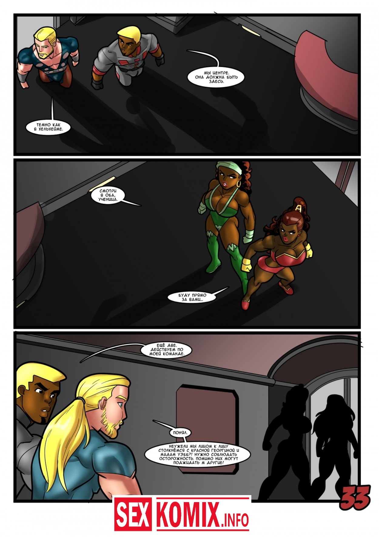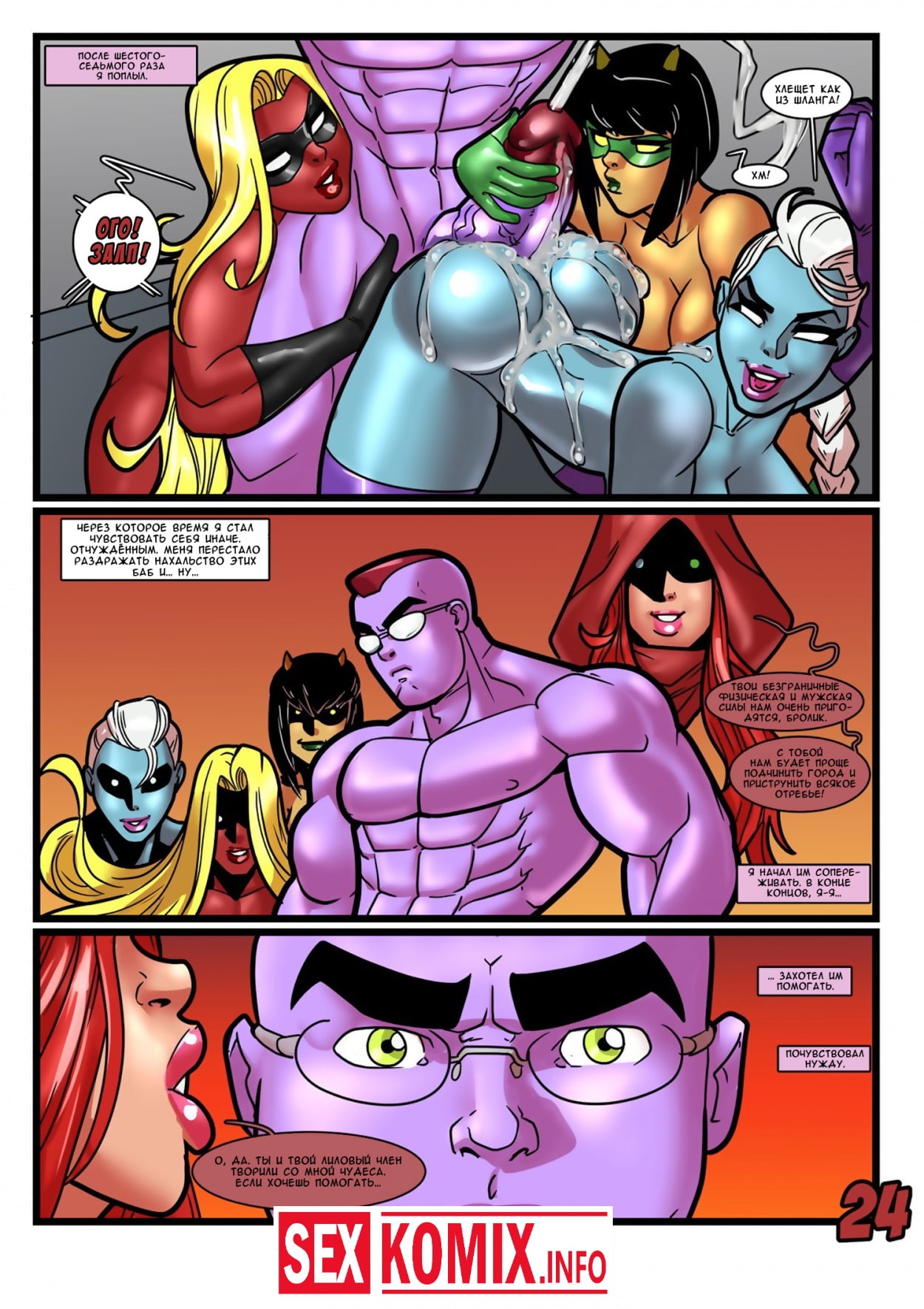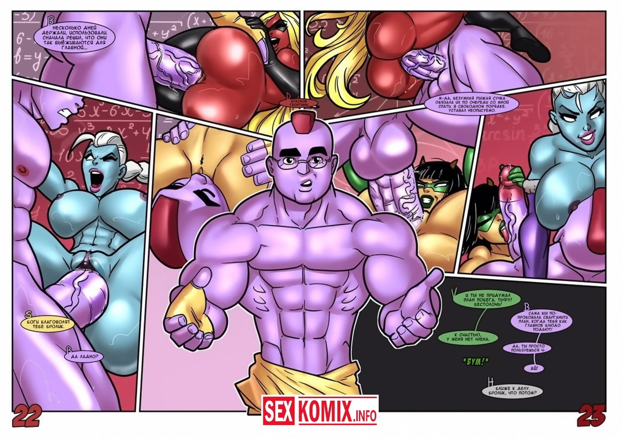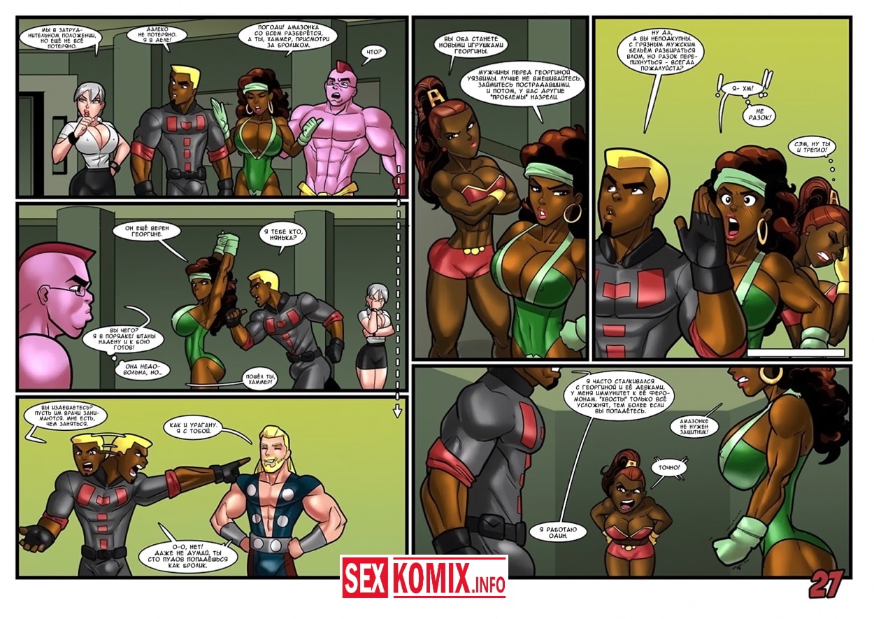 Порно комикс Геройские хроники. Поцелуй красной георгины. Два супер героя мужчина о женщина встретились на крыше небоскреба, ночь была тихая и значит можно расслабиться и заняться сексом. Девушка старается побить свой собственный рекорд, засунув огромный член своего напарника все глубже в свою глотку. После сочного отсоса их спортивные тела переплетаются и герои занимаются страстным сексом.
