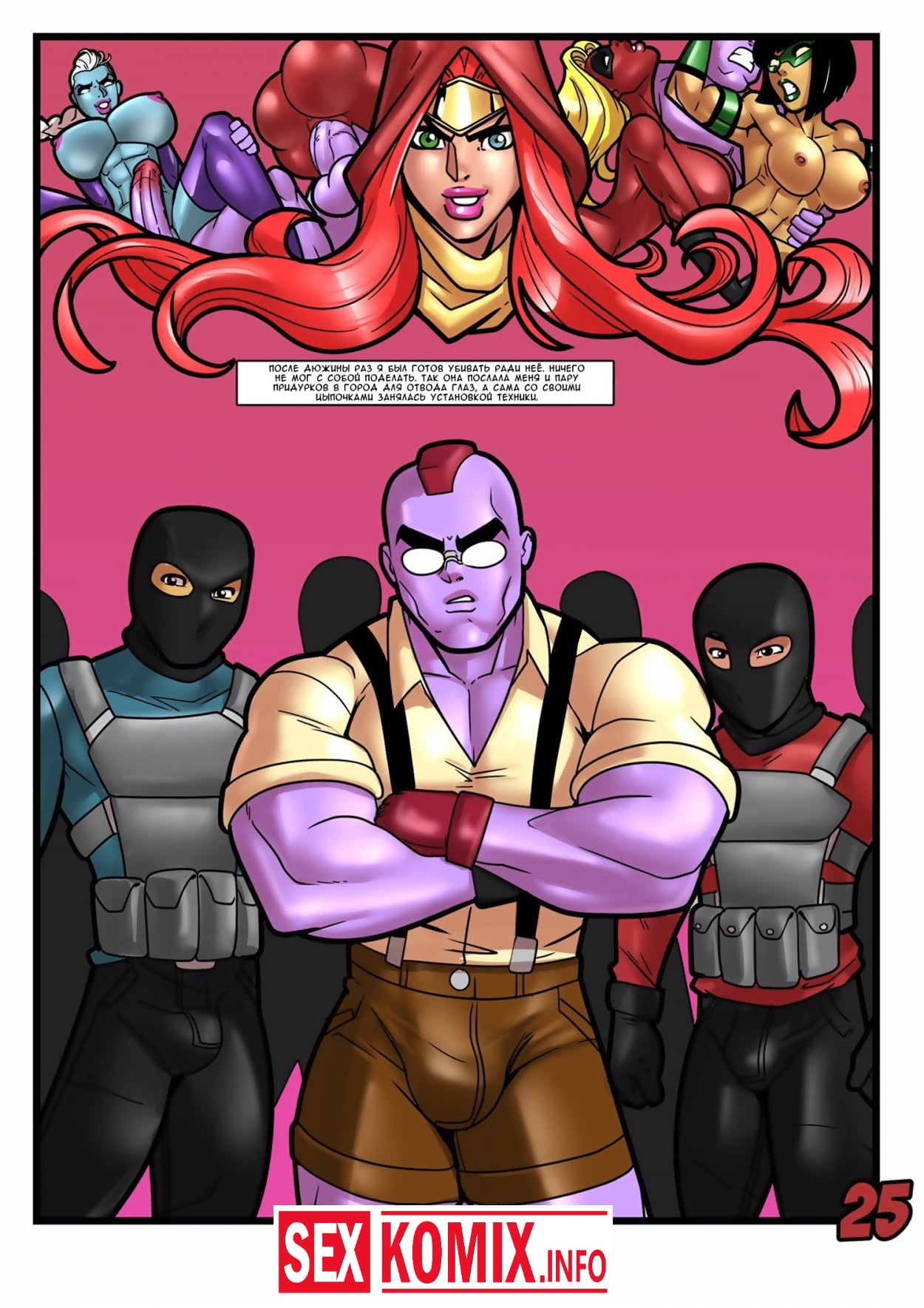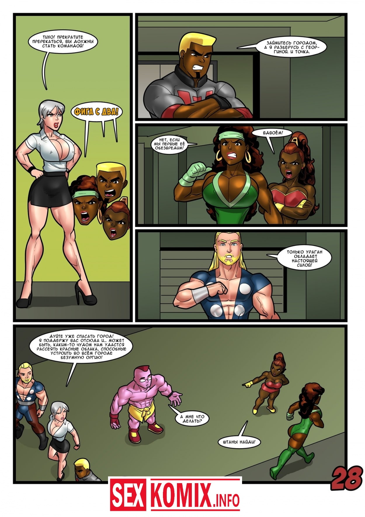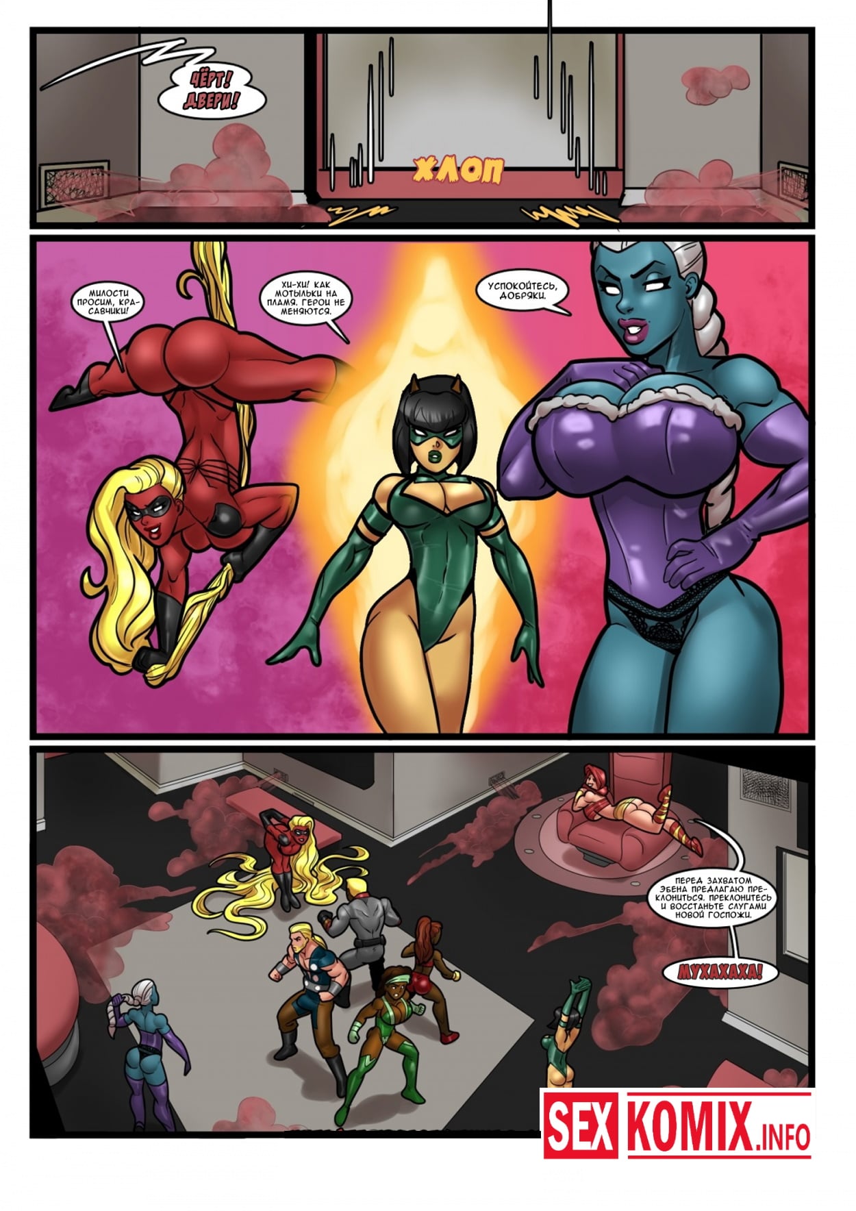 Порно комикс Геройские хроники. Поцелуй красной георгины. Два супер героя мужчина о женщина встретились на крыше небоскреба, ночь была тихая и значит можно расслабиться и заняться сексом. Девушка старается побить свой собственный рекорд, засунув огромный член своего напарника все глубже в свою глотку. После сочного отсоса их спортивные тела переплетаются и герои занимаются страстным сексом.